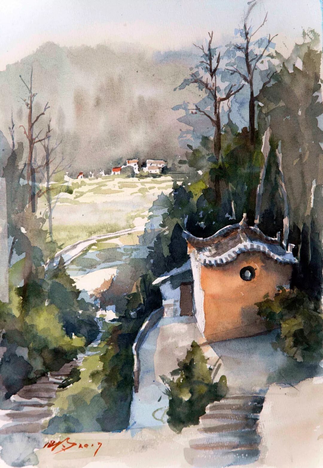 陈世明 〈婺源大里坑观音祠〉 水彩/纸本