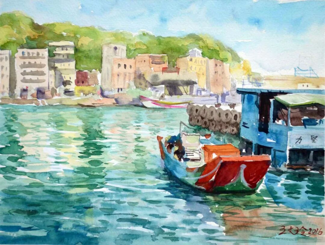 王文玲 〈北海岸金山渔港〉 水彩/纸本
