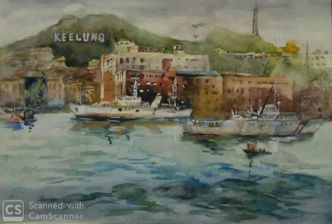 陈奕如 〈故乡基隆港〉 水彩/纸本