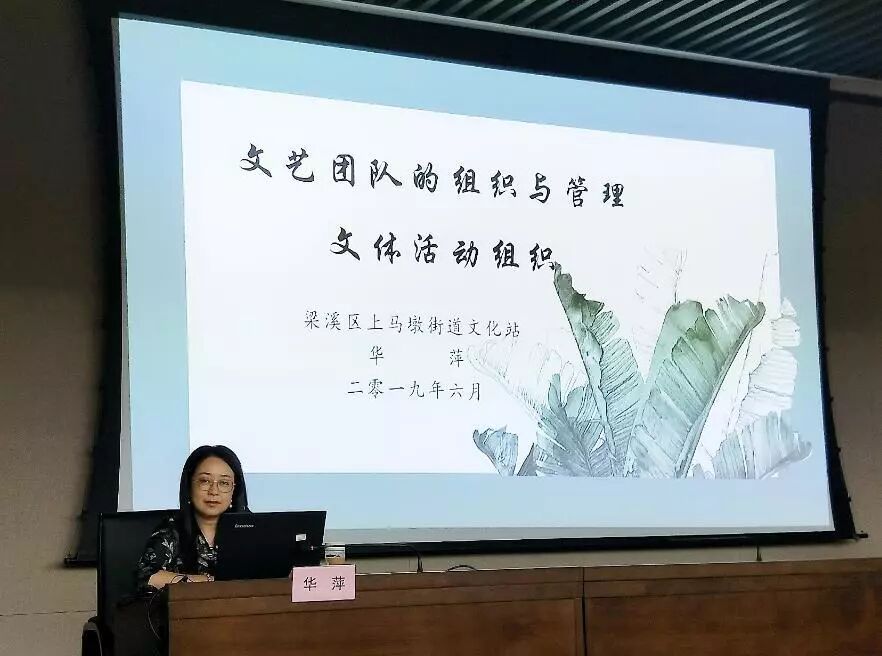 6月11日上午,梁溪区上马墩街道文化站站长华萍应邀参加2019年度新吴区文体管理干部培训班授课。