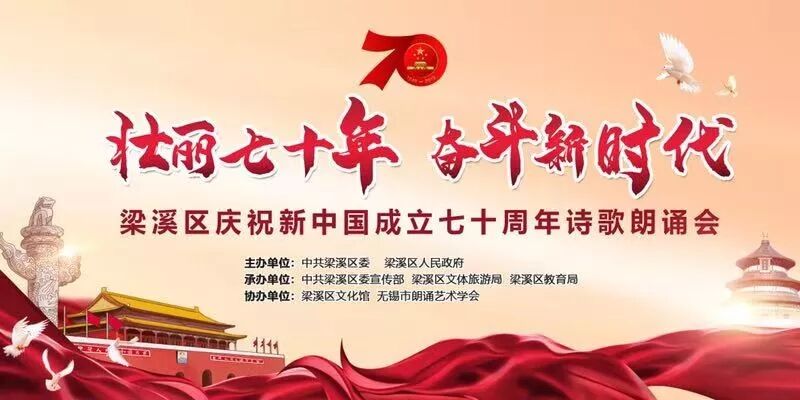 本次活动由中共梁溪区委、梁溪区人民政府主办,中共梁溪区委宣传部、梁溪区文体旅游局、梁溪区教育局承办,梁溪区文化馆、无锡市朗诵艺术学会协办。区委书记秦咏薪,区委常委、宣传部长张莉,区人大常委会副主任曹海燕,区政协副主席唐红和200多名梁溪各界群众齐聚市演艺剧院,共庆新中国七十华诞。