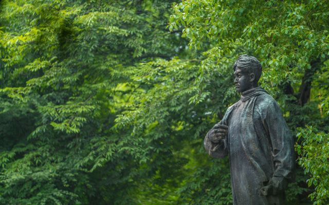 △这位年仅20岁就牺牲的年轻共产党员,他的塑像仍矗立在城中公园,见证着城市的日新月异。