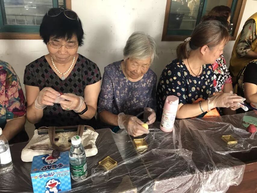 9月9日上午,惠山街道盛岸一村社区组织退休职工开展了“欢乐在盛一,情满在中秋”活动。活动现场,社区工作人员为居民准备好月饼的冰皮面团、馅料、手套、模具等材料。