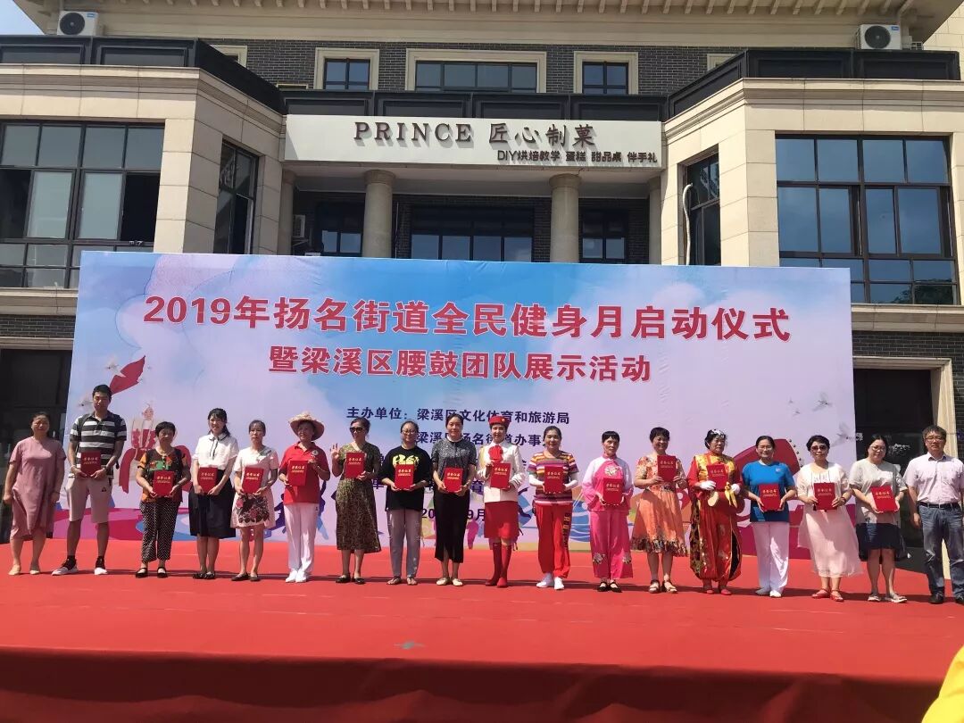 9月10日上午,由区文体旅游局和扬名街道办事处联合主办的2019扬名街道全民健身启动仪式暨梁溪区腰鼓团体展示活动在扬名街道滨河社区广场成功举办。