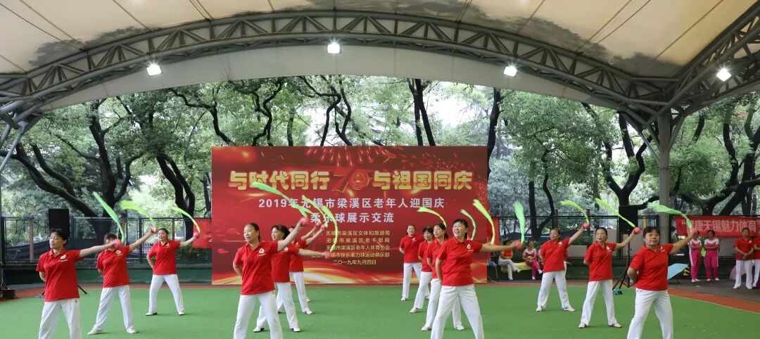 壮丽七十年,奋进新时代。为庆祝新中国成立70周年,更好贯彻落实“全民健身、健康中国”二大国家战略,进一步推进梁溪区柔乐球运动的普及和深入开展。9月4日上午由区文体旅游局、区老干部局、区老年人体育协会主办,无锡市快乐柔力球俱乐部协办的2019年梁溪区迎国庆柔乐球展示交流活动在市体育公园门球场举行。