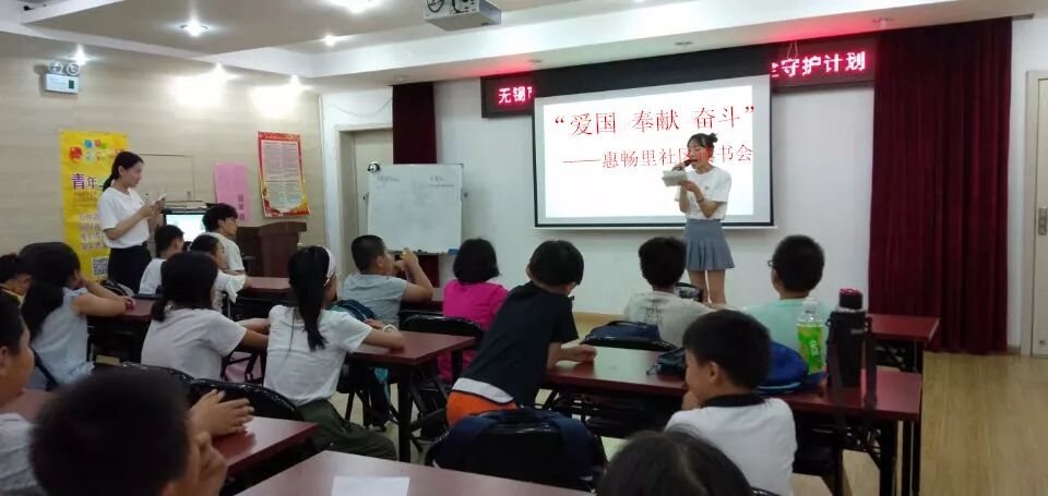 8月30日惠山街道惠畅里社区开展了以“爱国 风险 奋斗”为主题的读书分享会,孩子们一个个与大家分享了读书心得。分享会倡导家长和孩子把阅读作为家庭基本生活方式,培育孩子们的阅读兴趣,感受爱国情怀。