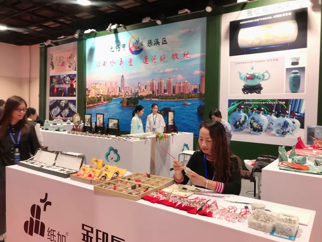 应2019第九届上海创意产业博览会组委会邀请,梁溪区文化体育和旅游局选送了4个非遗项目(国家级项目无锡精微绣、国家级项目无锡留青竹刻、省级项目宜兴青瓷、市级项目内画)和无锡古运河文化旅游发展有限公司、无锡问世文化传播有限公司参加了10月25日—27日在上海农业展览馆举行的2019第九届上海创意产业博览会。
