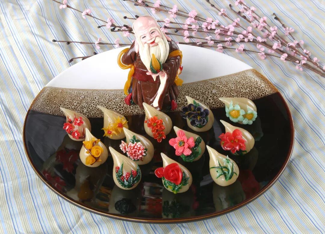 太湖船点,是江苏名点,著名米制食品。由熟米粉裹馅心后,捏成各种形状,蒸制而成。太湖船点源于江南水乡太湖流域的游船画舫及太湖船宴中的点心,经历了历代名师的精心制作,不断研究改进,将花卉瓜果、鱼虫鸟兽等各种形象引入船点,终于形成了小巧玲珑、栩栩如生,既可观赏、又可口尝的特色船点。