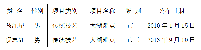2016年1月太湖船点入选江苏省第四批非物质文化遗产项目名录。