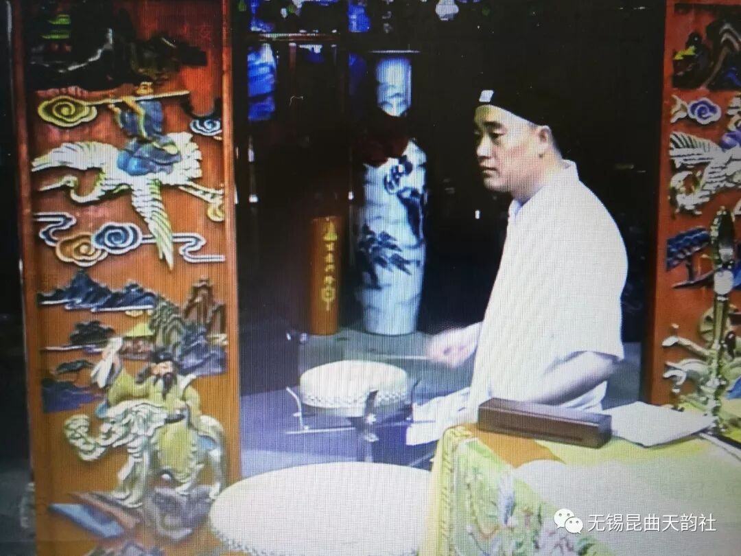 锡派道班与昆曲的相通处颇多,因为旧时道士们都会哼唱昆曲,在唱诵中就带入了昆曲特征,根据不同字音的平仄和四声阴阳,结合无锡本地语气,依字行腔,一些曲牌和唱腔源于昆曲,并且都讲究声韵的静穆典雅,讲究唱字的字头、字腹、字尾。旧时无锡的幼童习道要学习昆曲的唱念做,曾经斋醮仪式中还有《天官赐福》,几近于昆曲表演(《无锡道教科仪音乐研究》)。从王凯法师的唱诵中,我们还能听得出里面昆曲的影子,如字头的喷口、行腔的筋节等。