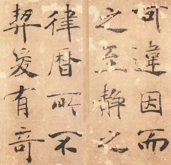 褚遂良最早学二王,尤其能临摹一手隽永《兰亭序》,而楷书则在欧阳询与虞世南一并指导下学习的,最后打通行意楷法,呈现己貌,出类拔萃。李宗瀚评价褚遂良说:“遒丽处似虞,端劲处似欧,而运以分隶遗法。”这句话小结了褚遂良对于虞世南和欧阳询的处理。