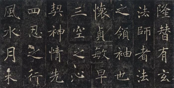 而褚遂良十多年前的《孟法师碑》,则呈现了他的一种摸索过程,这份中期作品吸收了其两位老师欧阳询和虞世南的优点,用笔轻重虚实、起伏顿挫均富于变化,结体疏密相间,顾盼照应,章法缜密而气势流动,逐步向晚年风格靠拢。