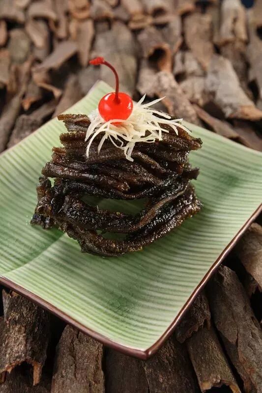 无锡有道地方名菜叫“梁溪脆鳝”,据说,主材黄鳝代表的是游龙,制成脆鳝后摆盘成塔状,其实就是象征锡山顶上的龙光塔。