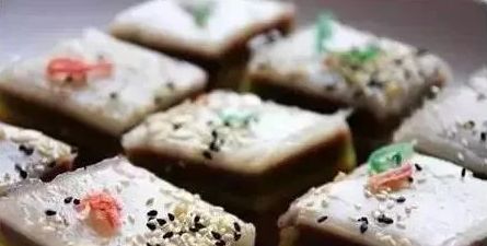 据史料记载,重阳糕又称花糕、菊糕、五色糕,制无定法,较为随意。 九月九日天明时,以片糕搭儿女头额,口中念念有词,祝愿子女百事俱高,乃古人九月作糕的本意。讲究的重阳糕要作成九层,像座宝塔,上面还作成两只小羊,以符合重阳(羊)之义。有的还在重阳糕上插一小红纸旗,并点蜡烛灯。这大概是用“点灯”“吃糕”代替“登高”的意思,用小红纸旗代替茱萸。当今的重阳糕,仍无固定品种,各地在重阳节吃的松软糕类都称之为重阳糕。