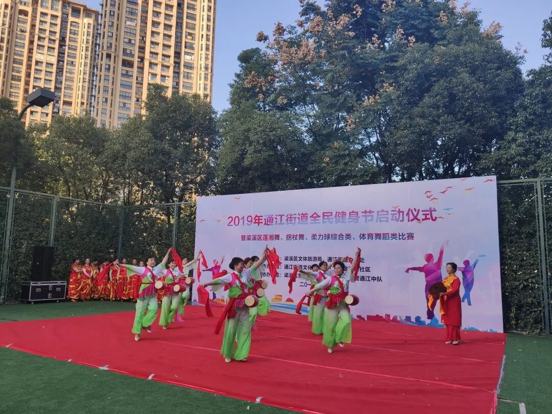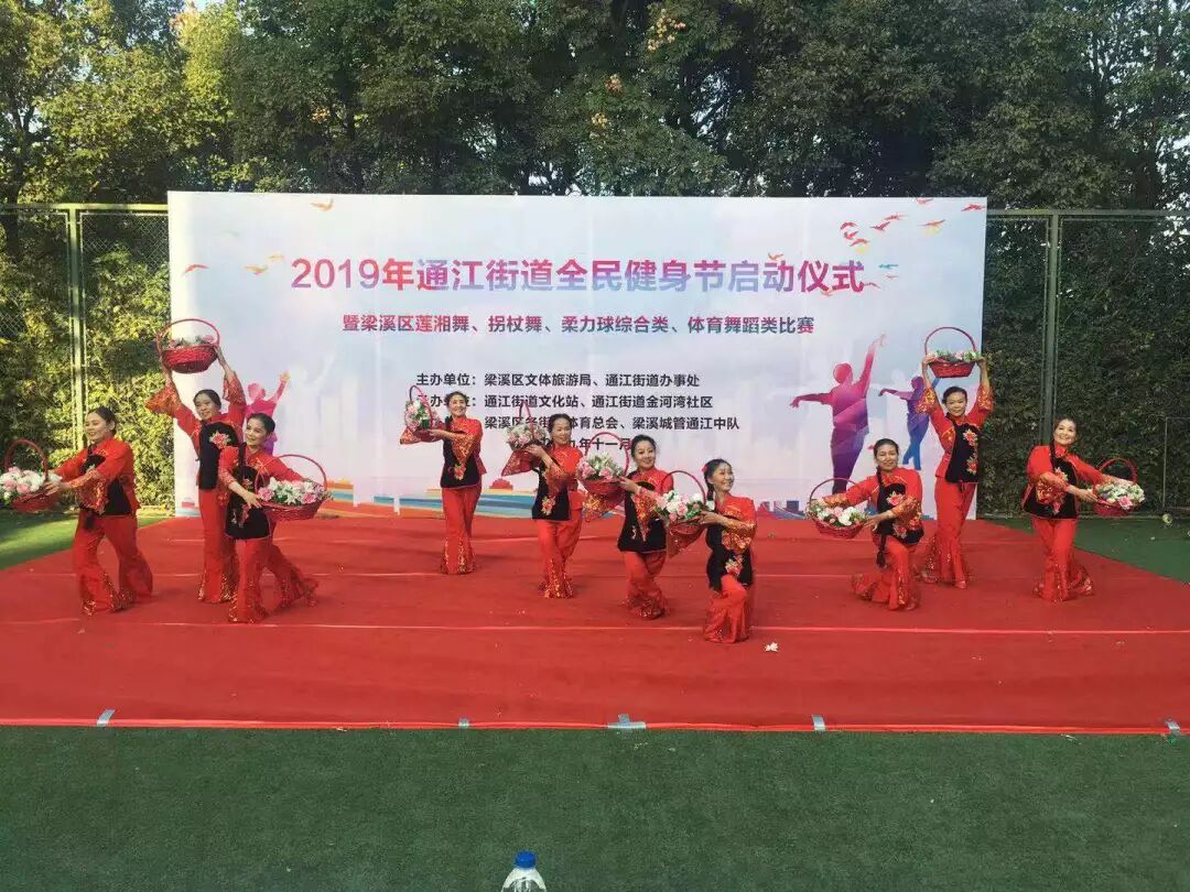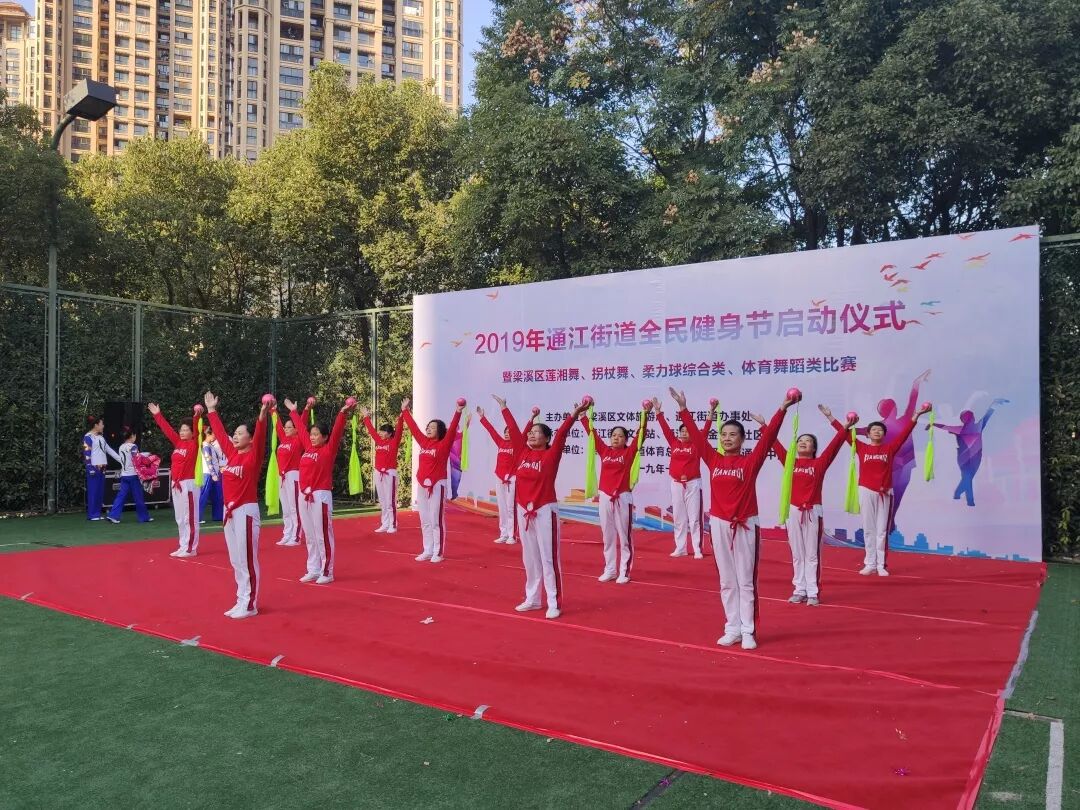 为进一步提高国民体质和健康水平,倡导健康文明的社会新风,积极响应全民健身的号召,11月21日,由区文体旅游局与通江街道办事处联合主办的2019年通江街道全民健身节启动仪式暨梁溪区莲湘舞、拐杖舞、柔力球综合类、体育舞蹈类比赛在通江街道金河湾社区网球场顺利举行。