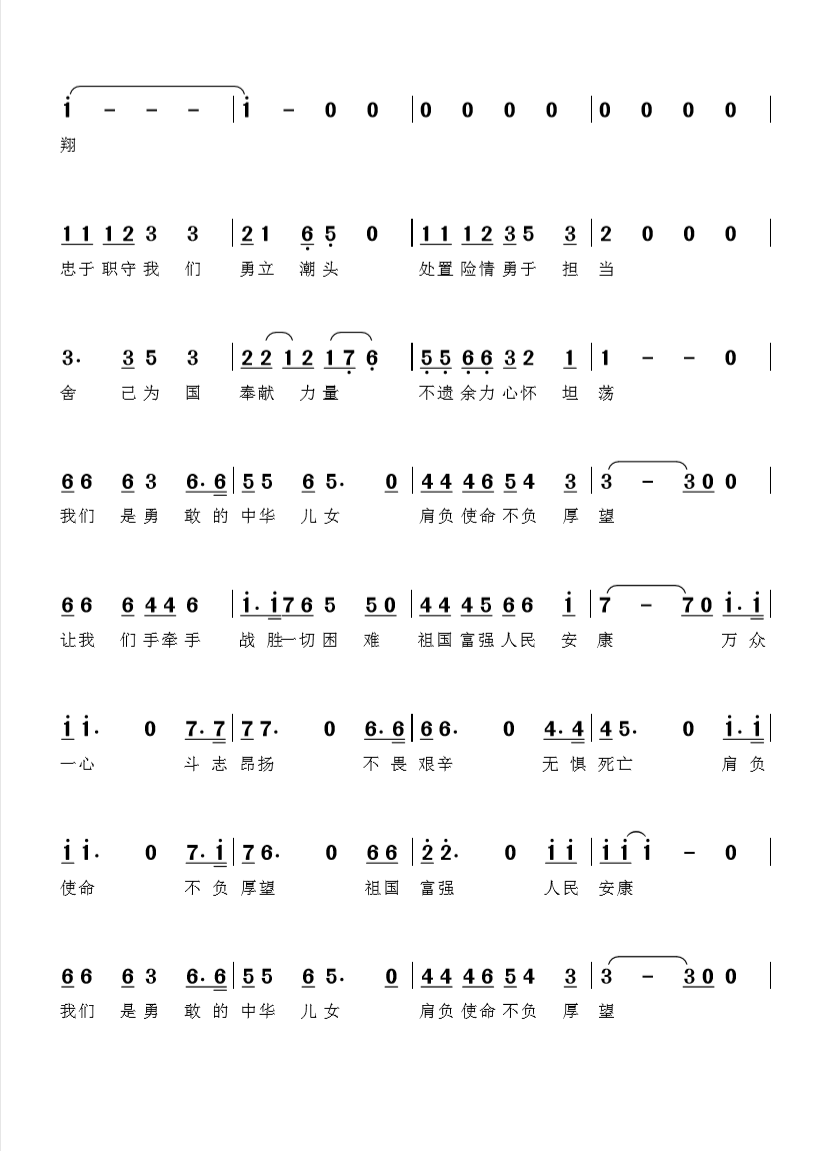 《我们是勇敢的中华儿女》简谱