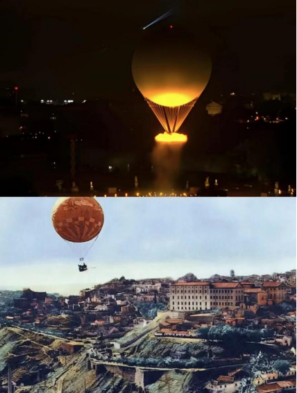 本次奥运会主火炬热气球的造型,高30米,直径22米,跟法国作家儒勒·凡尔纳的著名小说《环游世界八十天》中的热气球造型有异曲同工之妙,小说也多次被改编成同名电影。