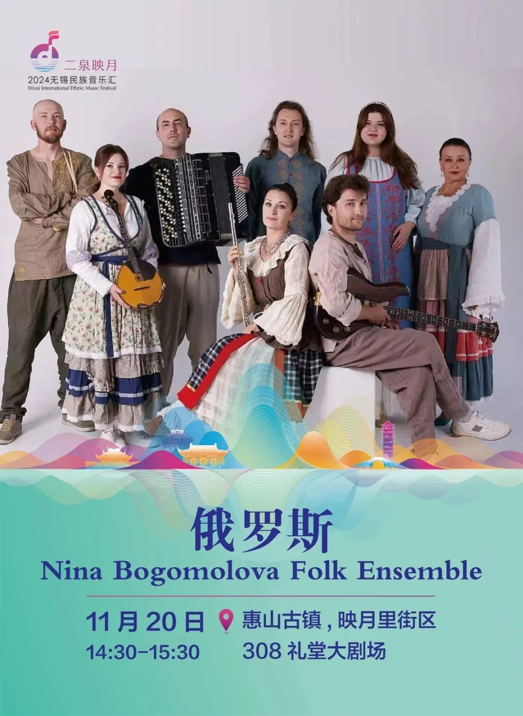 俄罗斯Nina Bogomolova Folk Ensemble成立于2019年,擅长演奏俄罗斯民间音乐以及苏联时期的经典作品,包括穆斯林·马戈马耶夫、安娜·杰尔曼、奥列格·阿诺夫里耶夫、佩斯尼亚里、让娜·阿古扎罗娃和布拉沃乐队的经典曲目。此外,乐团还擅长演绎苏联电影中的主题音乐,如《办公室的浪漫》《舒里克的冒险》《伊万•瓦西里耶维奇变职业》等。