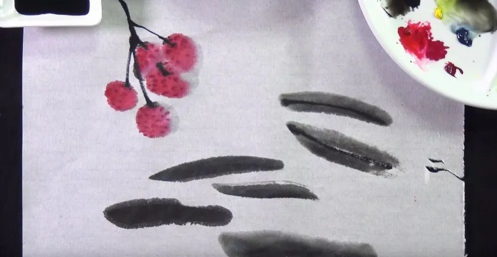 画家们运笔如泼,用水墨勾勒荔枝的形态,