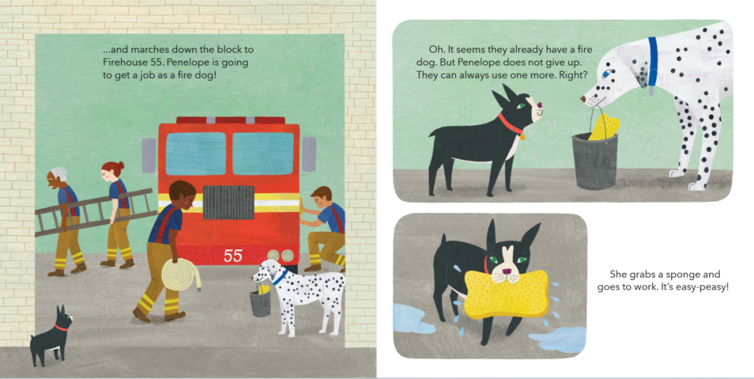 ……她昂首阔步走到了 55 号消防站。佩内洛普打算找一份工作,当一只消防犬!