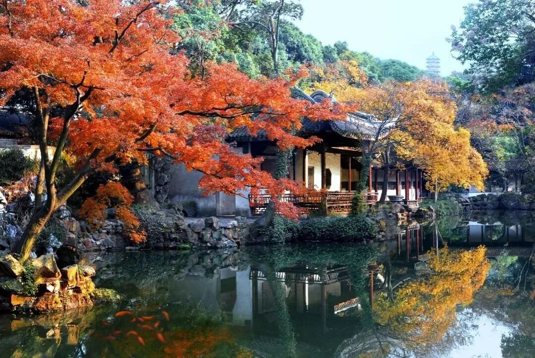 要领略江南的秋色,寄畅园无疑是不可或缺的一站。与苏州园林相比,寄畅园更显雅致,依山而建的园景层次丰富,一步一景,让人流连忘返。深秋时分,园内更是色彩斑斓,绿色的香樟叶、金黄的银杏叶、红色的枫叶,一绿一黄一红,染就了一园秋色,加上浑然天成的山水园林相映成趣,光影交错相映,呈现出一种“淡妆浓抹总相宜”的意境。
