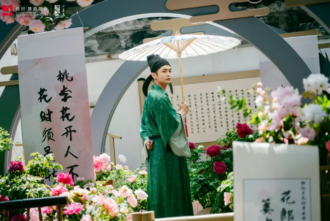 惠山映月里街区,有无锡“乐界顶流”阿炳的雕塑,伴随着动人的乐曲、流动的清泉与层层叠叠转动着的金属光泽,成为映月里景区的地标之一。