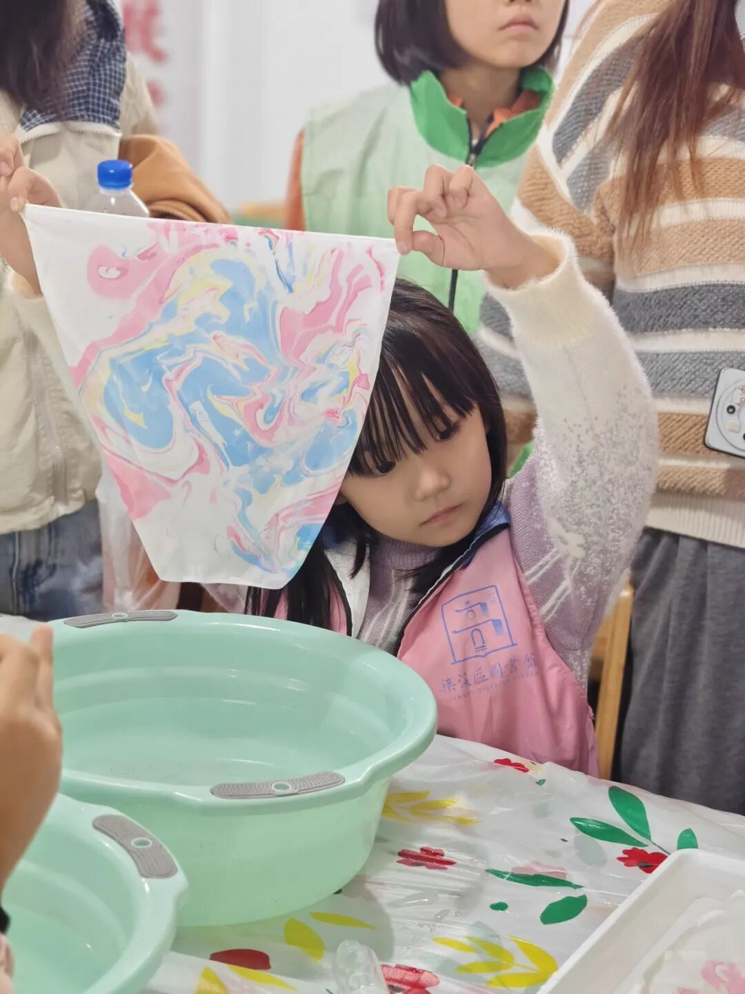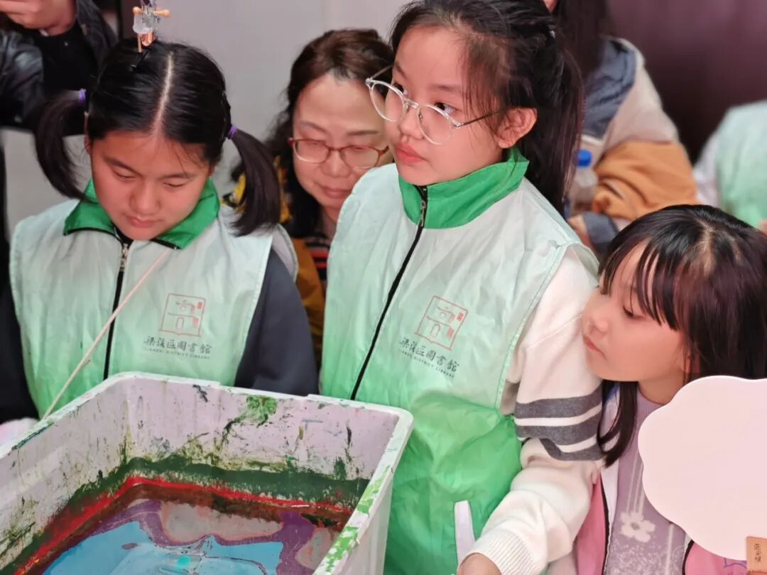 在培南小学,大家用纸笔记录下运河的奔流不息和两岸的黛瓦白墙。水拓丝巾和非遗漆扇两个动手环节,孩子们充分享受到了流水与传统文化相结合的无穷乐趣,运河的古老“丝韵”与现代工艺碰撞出了独特的火花。
