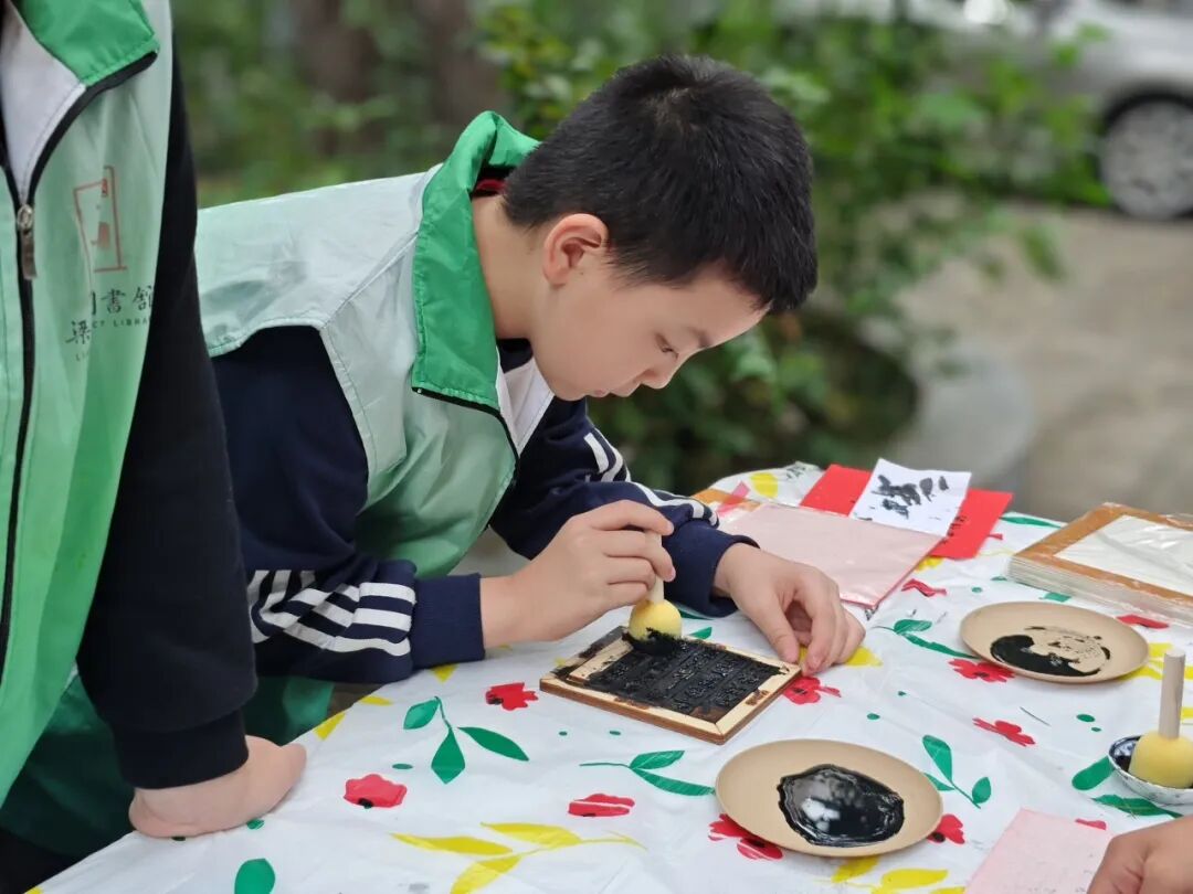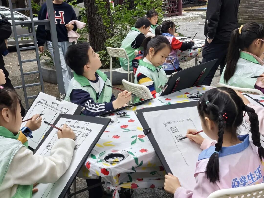 国专书院里,还有更多精彩等着孩子们。大家拿起画笔,在老师的指导下,将书院的老屋飞檐、院中草木一一定格在画纸上;蘸墨、铺纸、轻拓,金石拓印梁溪古称,让孩子们亲手触摸到这座城市的古雅底色;最后是秋日诗词雕版印刷,在老师指导下,将喜欢的诗句印在纸上,墨香与诗意交织,古时的文人雅趣不外如是。