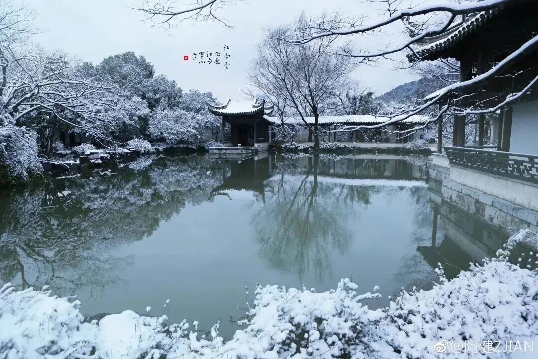 既有粉墙黛瓦映白雪的清绝景致
