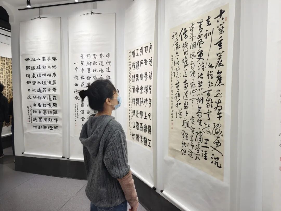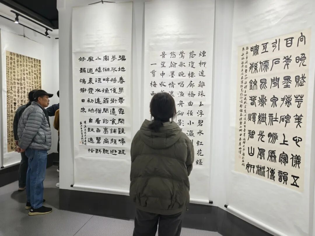 观者驻足其间,既可于楷书的端庄规整中感受沉静内敛的君子之风,可于山水的雄奇壮阔中体悟天人合一的哲学智慧,亦可于花鸟的玲珑雅致中品味诗意栖居的生活美学--江南文脉的温润与时代精神的昂扬在此交融共生,构成一曲动人的艺术交响。