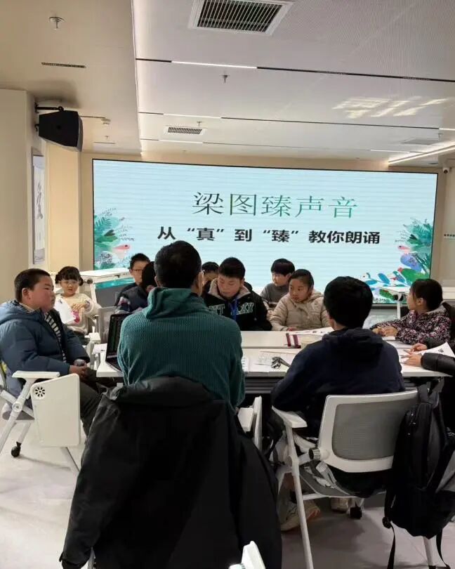 梁图臻声音系列课堂中,孩子们坐在一起。他们稚嫩而坚定的童声,是古诗文千年底蕴的生动传承。