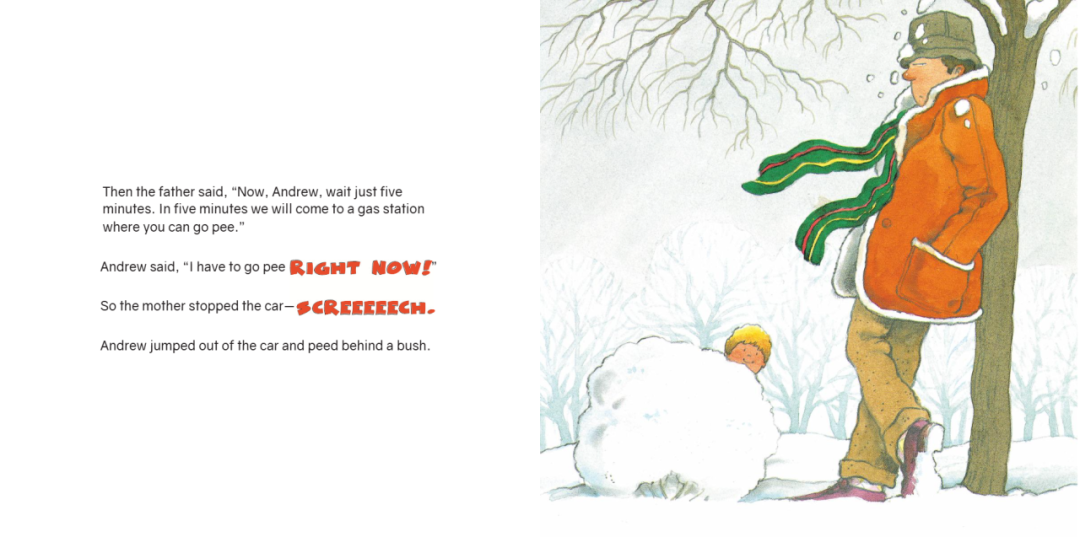 不出意外的,Andrew再次拒绝,不用上厕所!可是结果呢?你一定猜到了!你家娃是不是也有这种情况?那就赶快扫码,把这本非常写实又笑料满满的绘本借阅过来,是免费的哟~跟孩子一起读一读,相信孩子们也会笑到停不下来的!
