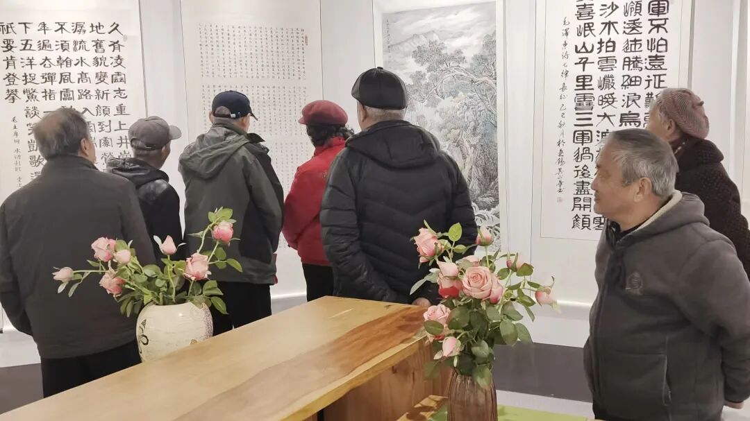 本次展览共展出书画作品58件,均来自无锡市老年书画协会北塘分会的会员。参展的老年书画家们,将半生阅历化作纸上烟云。他们或绘山水寄情,或写花鸟言志,或书正气歌怀,一笔一画皆见筋骨,一墨一彩尽显风华。那些工整的楷书、飘逸的行草、苍劲的篆隶,以及水墨氤氲的山水、翎毛毕现的花鸟,无不是岁月淬炼的结晶,是“老有所学、老有所乐”的生动诠释。