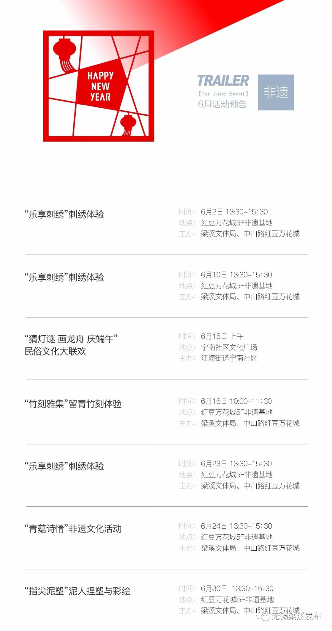 【预告】梁溪区6月份公共文化活动精彩预告!