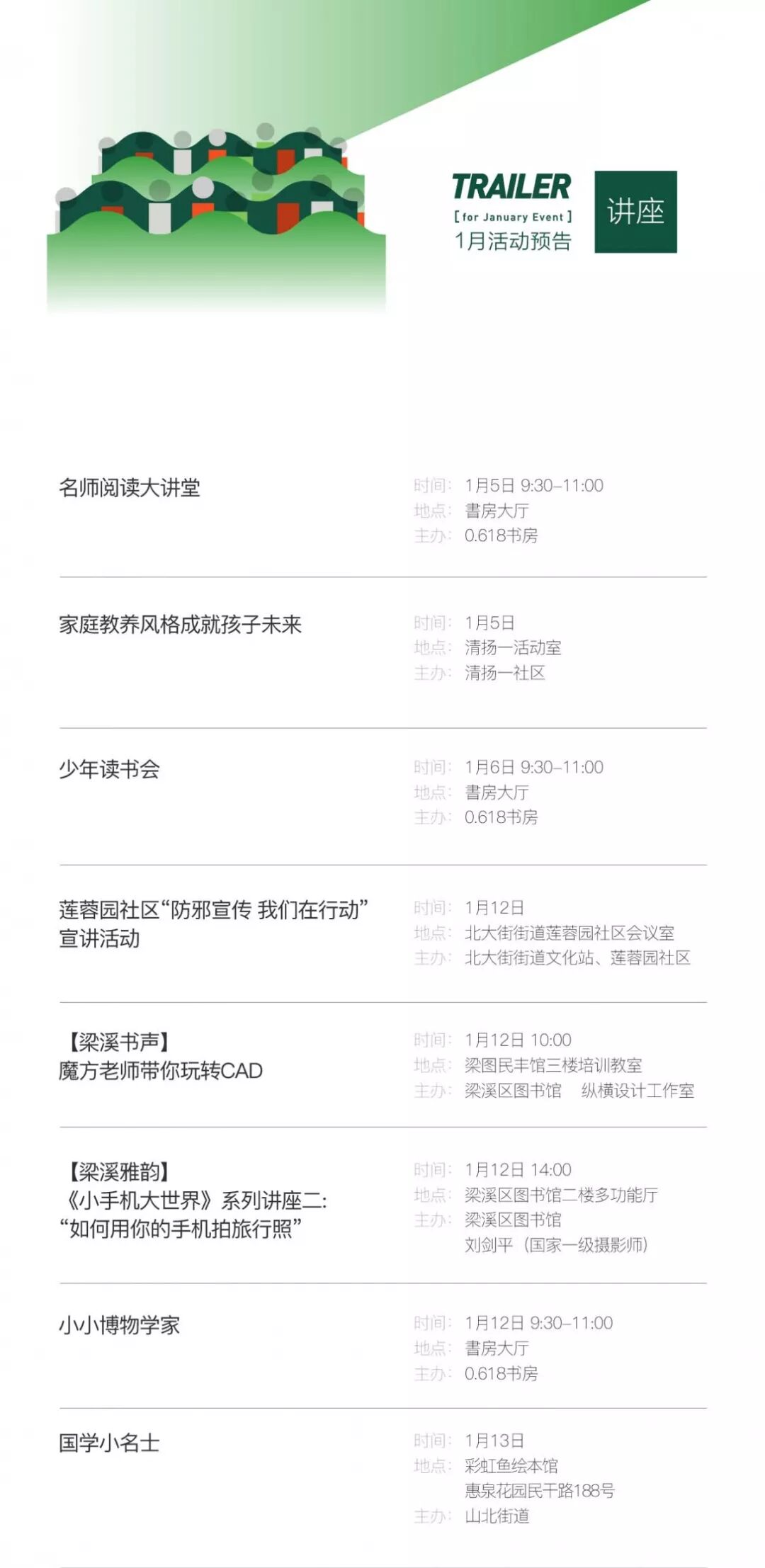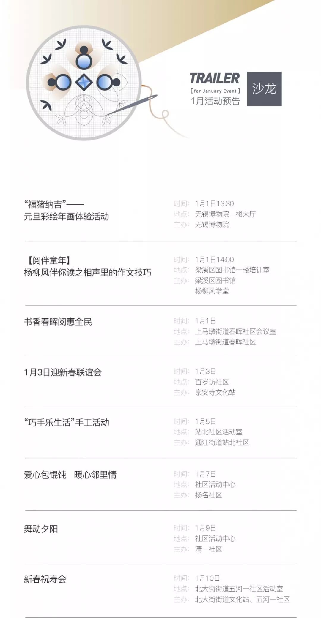 【预告】精彩纷呈!2019年1月活动预告新鲜出炉~就在家门口,快看!