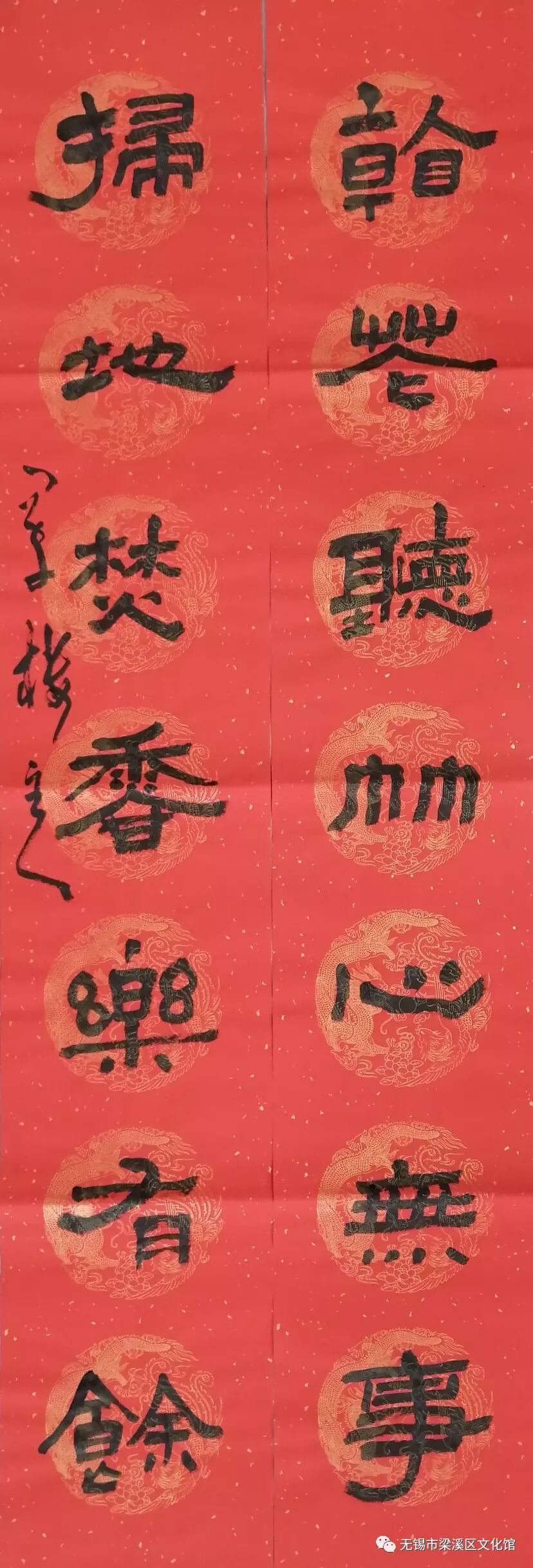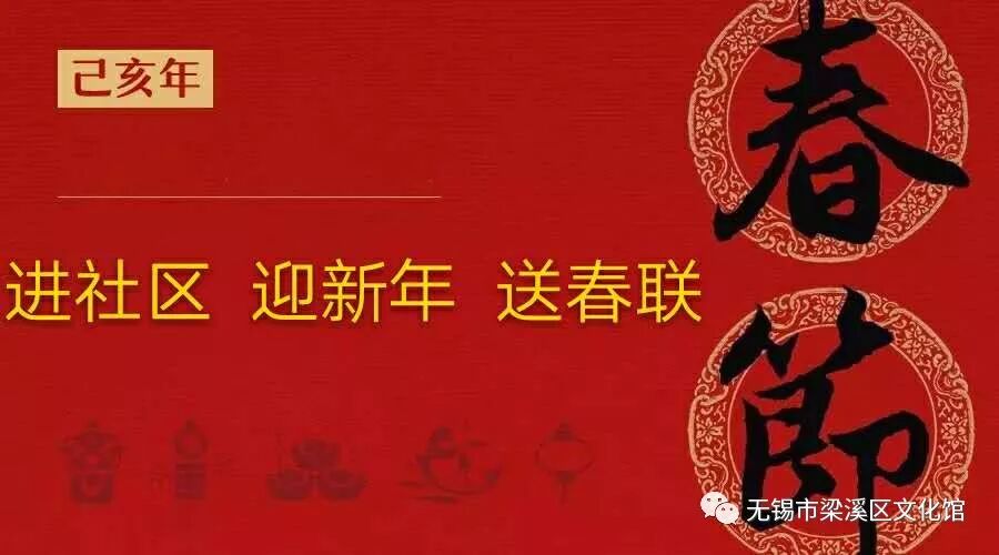 为弘扬中华民族优良传统,传承非物质文化,宣传楹联艺术,丰富文化生活,2019年1月29日、31日梁溪区文体局携手梁溪区美协举办“进社区 迎新年 送春联”活动,欢迎市民群众就近免费领取。