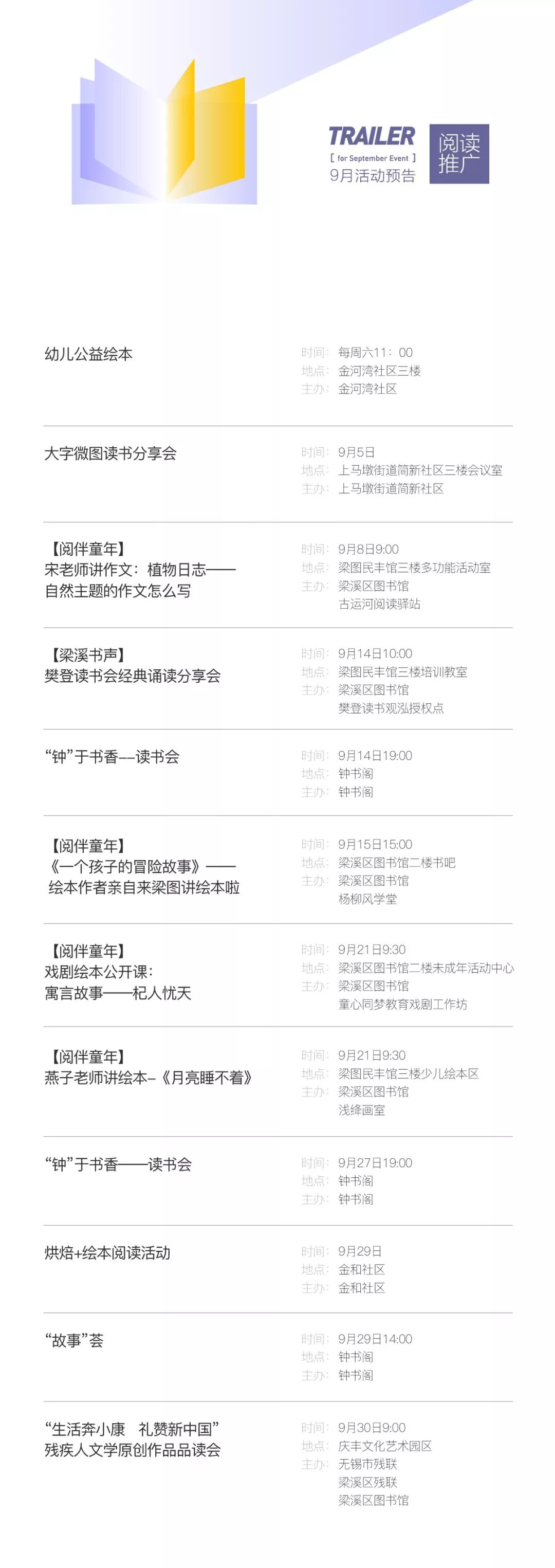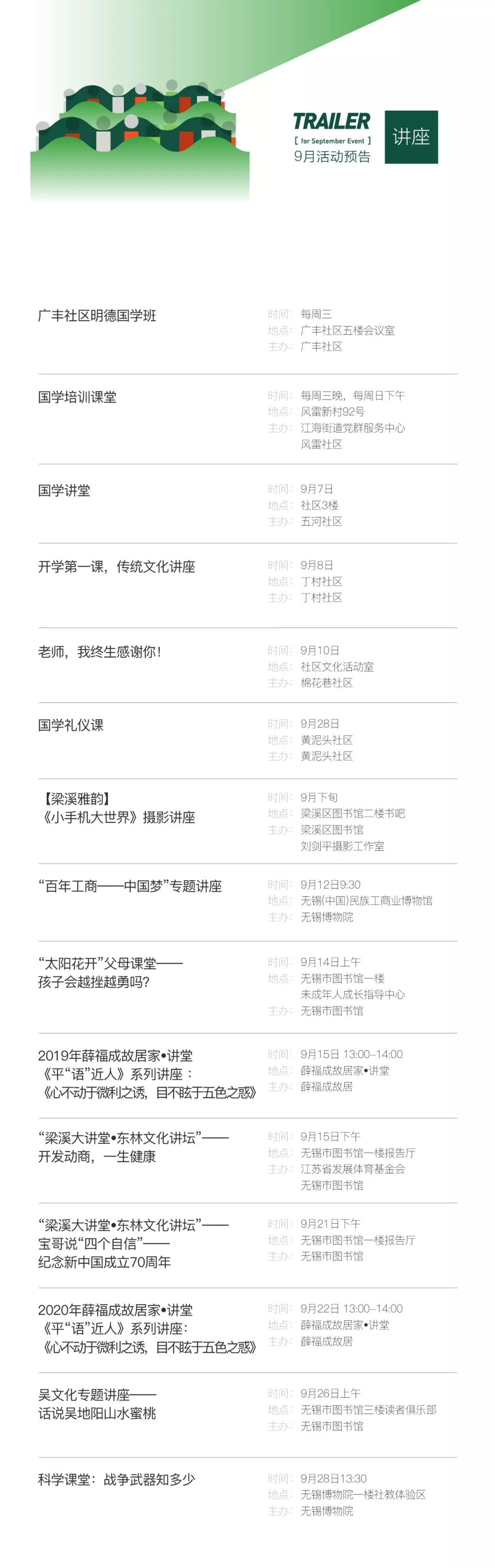 预告 | 梁溪区9月公益文化活动如期而至!大家可以约起来啦!