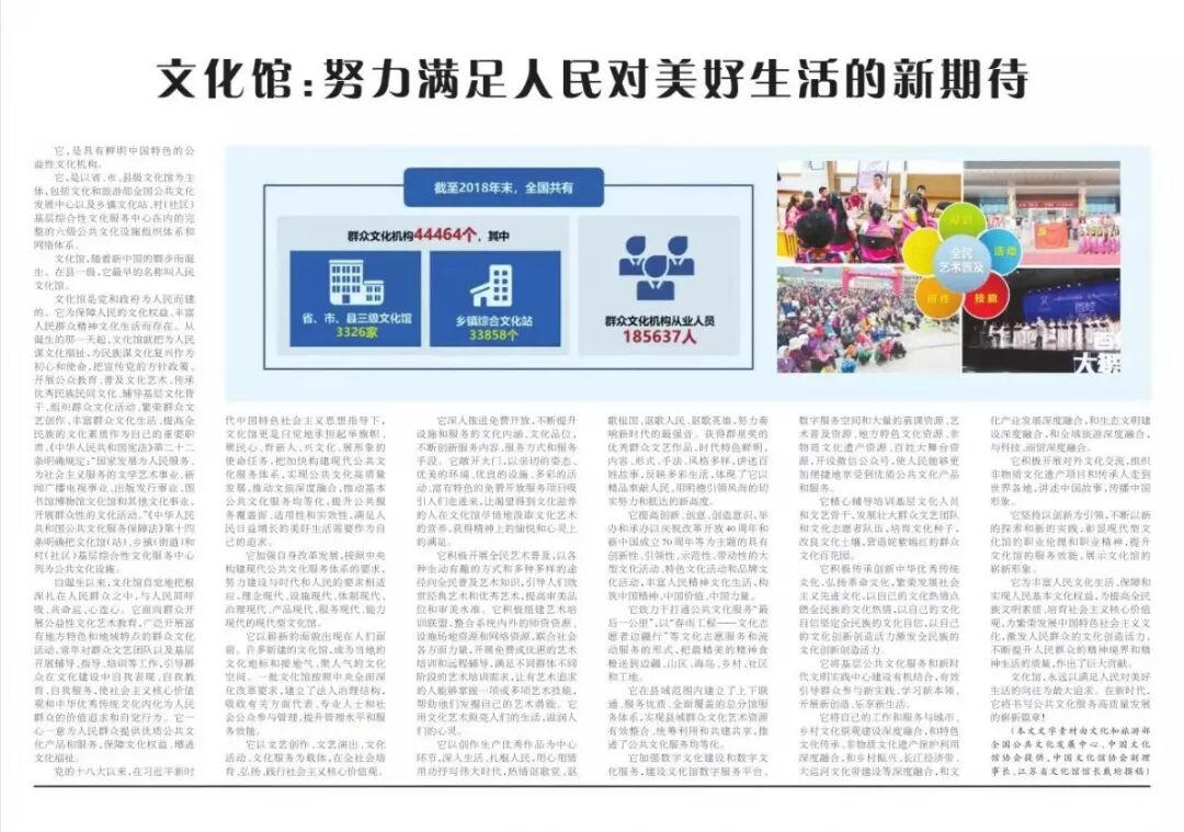 11月25日,中国文化报刊发江苏省文化馆馆长戴珩文章《文化馆:努力 满足人民对美好生活的新期待》,现转发此文。