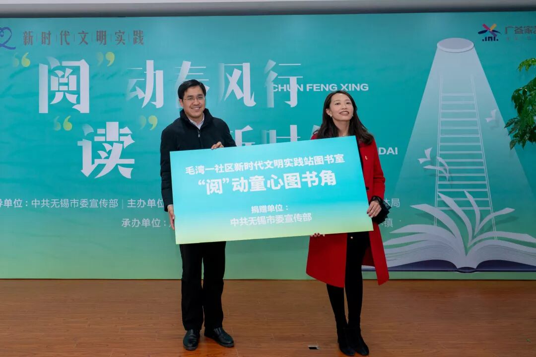 1月15日上午,由无锡市委宣传部指导,梁溪区委宣传部、区教育局、区文体旅游局主办的无锡市2020“全民阅读春风行动”在广益街道毛湾一社区新文明实践站启动,打造了一场接地气、冒热气、聚人气的锡城新春阅读嘉年华。