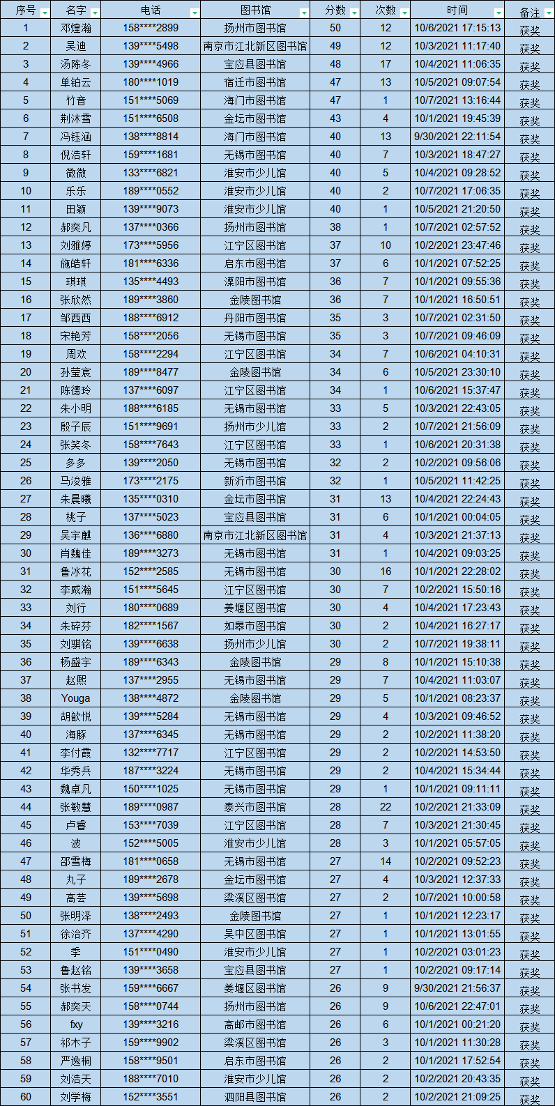 亲爱的小朋友,获奖名单中有你的名字吗?赶紧来图书馆领取你的精美奖品吧!