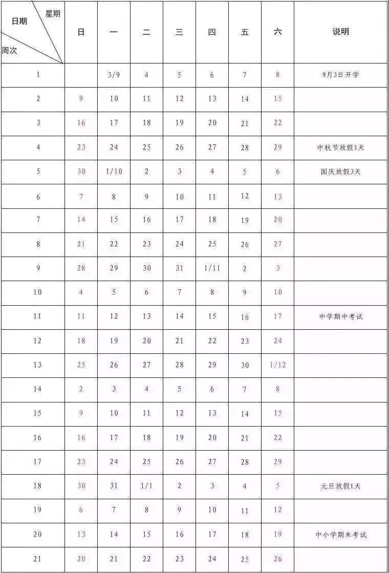(2018~2019学年第一学期寒假放假表)