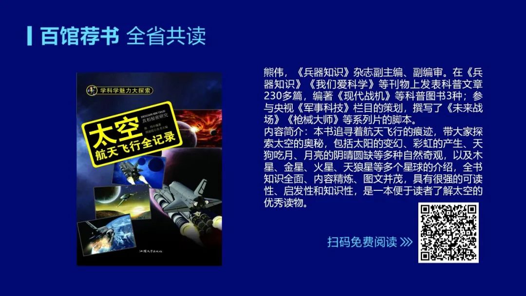 仰望星空,感叹宇宙之浩瀚,人类之渺小。地球之外,宇宙之中,有太多未知和奥妙等待去探索,本期书单聚焦航天系列,既有最专业的航天知识,又有最真实的航天故事,还有超恢宏的航天科幻,让我们一起踏上征途,走进星辰大海,探索宏大的宇宙。