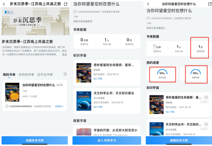 活动期间参赛者可创建或加入最多5个知识书单进行阅读,知识书单内至多可设置5个主题模块,每个主题下至多添加20本书籍;